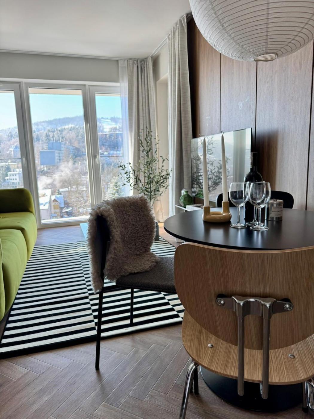 Apartament z 2 sypialniami. Featuring a private entrance, this apartment consists of 1 living room, 1 separate bedroom and 1 bathroom with a walk-in shower and a hairdryer. The well-fitted kitchenette features a stovetop, a refrigerator, a dishwasher and kitchenware. Boasting a terrace with mountain views, this apartment also provides a washing machine and a flat-screen TV with streaming services. The unit offers 3 beds. Apartament - 6 osobowy. Powierzchnia pokoju ok.: 46 mkw.