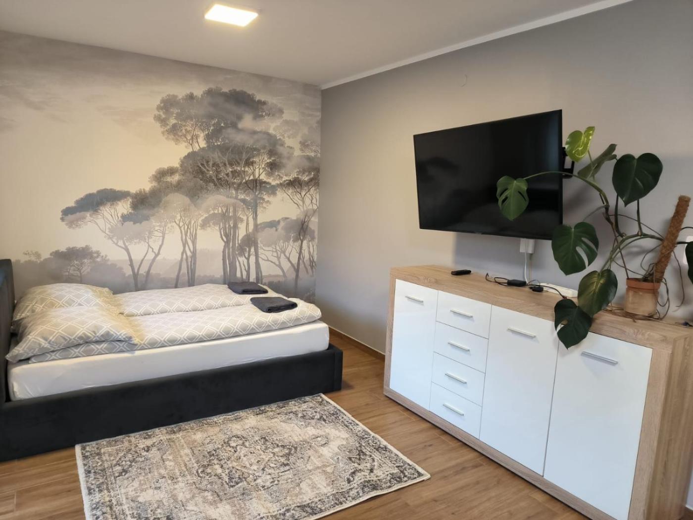W apartamencie do dyspozycji gości przygotowano kilka sypialni (2) oraz aneks kuchenny. Wyposażenie obejmuje też telewizor z płaskim ekranem.