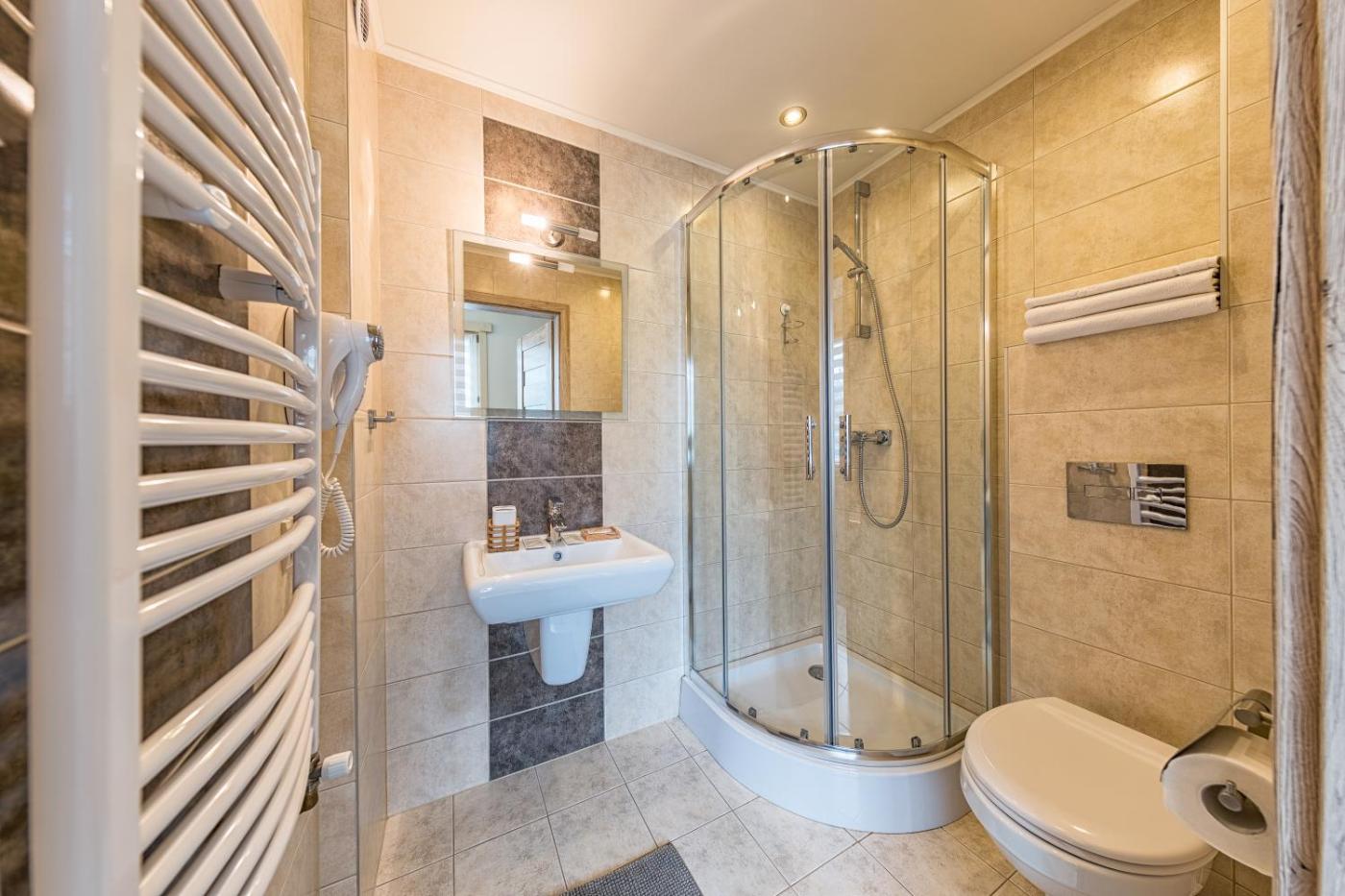 Pokój trzyosobowy. Providing free toiletries, this triple room includes a private bathroom with a walk-in shower and a hairdryer. The triple room provides a flat-screen TV with cable channels, a minibar, a tea and coffee maker, a wardrobe as well as mountain views. The unit offers 2 beds. Pokój Trzyosobowy - 3 osobowy. Powierzchnia pokoju ok.: 15 mkw. ;