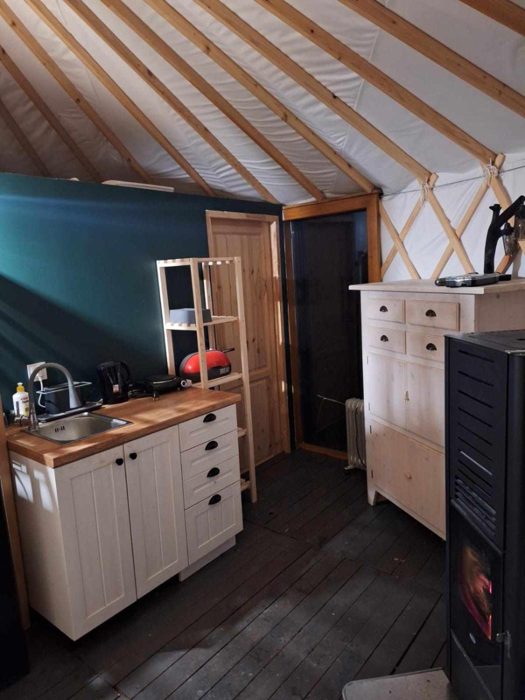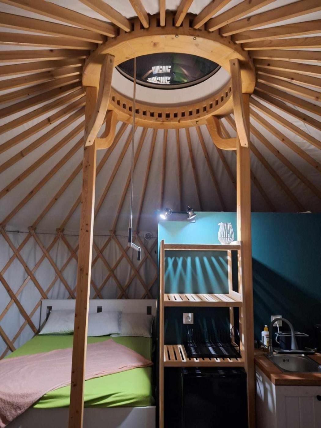 Namiot. The tent provides a private entrance, a dining area, as well as a private bathroom featuring a shower and a hairdryer. Guests will find a stovetop, a refrigerator, kitchenware and an electric kettle in the well-equipped kitchenette. The tent also offers a barbecue. The tent features a sofa, an outdoor dining area and garden views. The unit offers 2 beds. Namiot - 4 osobowy. Powierzchnia pokoju ok.: 28 mkw.