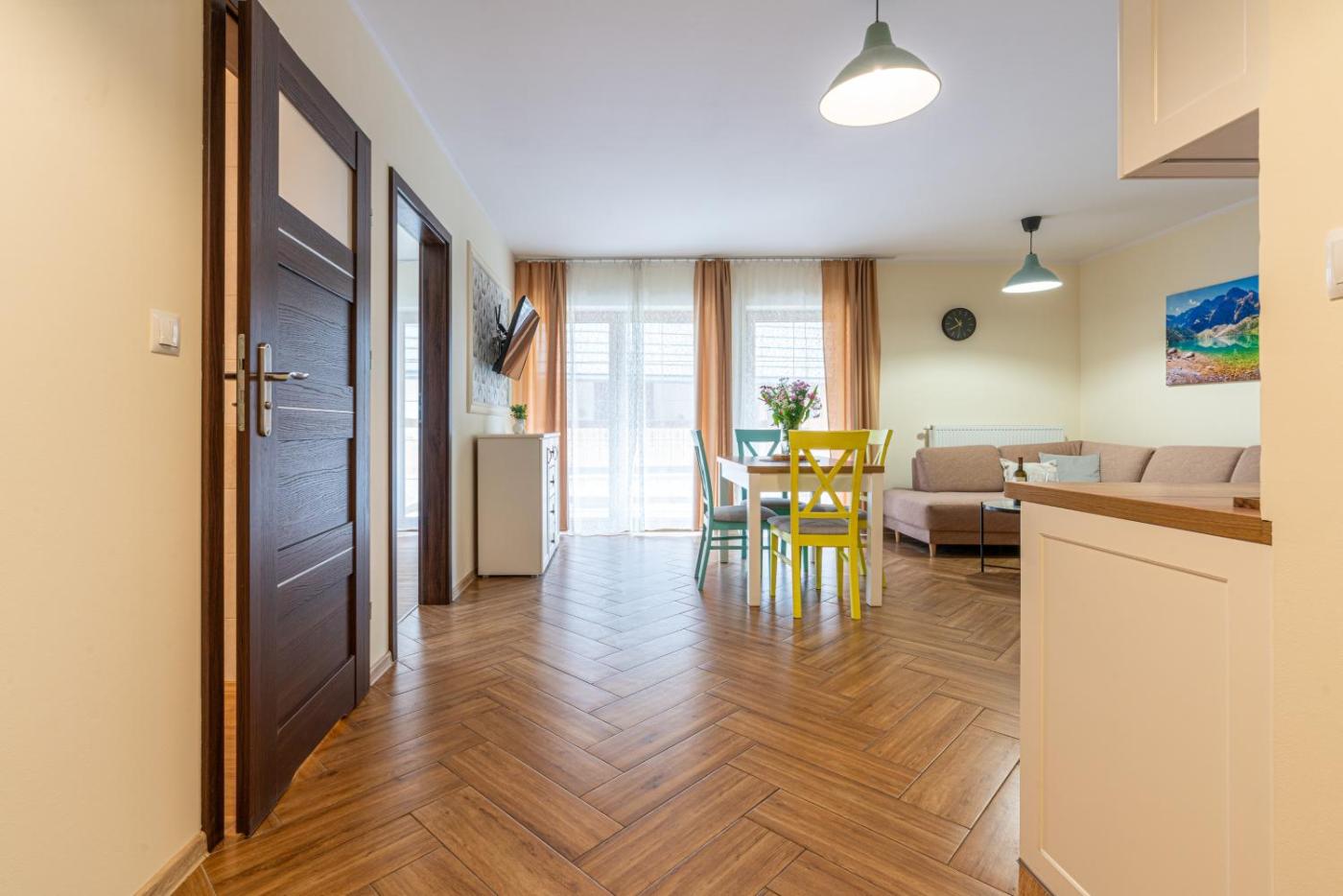 Apartament z 1 sypialnią. This air-conditioned apartment features 1 living room, 1 separate bedroom and 1 bathroom with a bath. The well-fitted kitchen has a stovetop, a refrigerator, a dishwasher and kitchenware. Boasting a balcony with mountain views, this apartment also features a dining area and a flat-screen TV. The unit has 2 beds. Apartament - 4 osobowy. Powierzchnia pokoju ok.: 45 mkw. ;